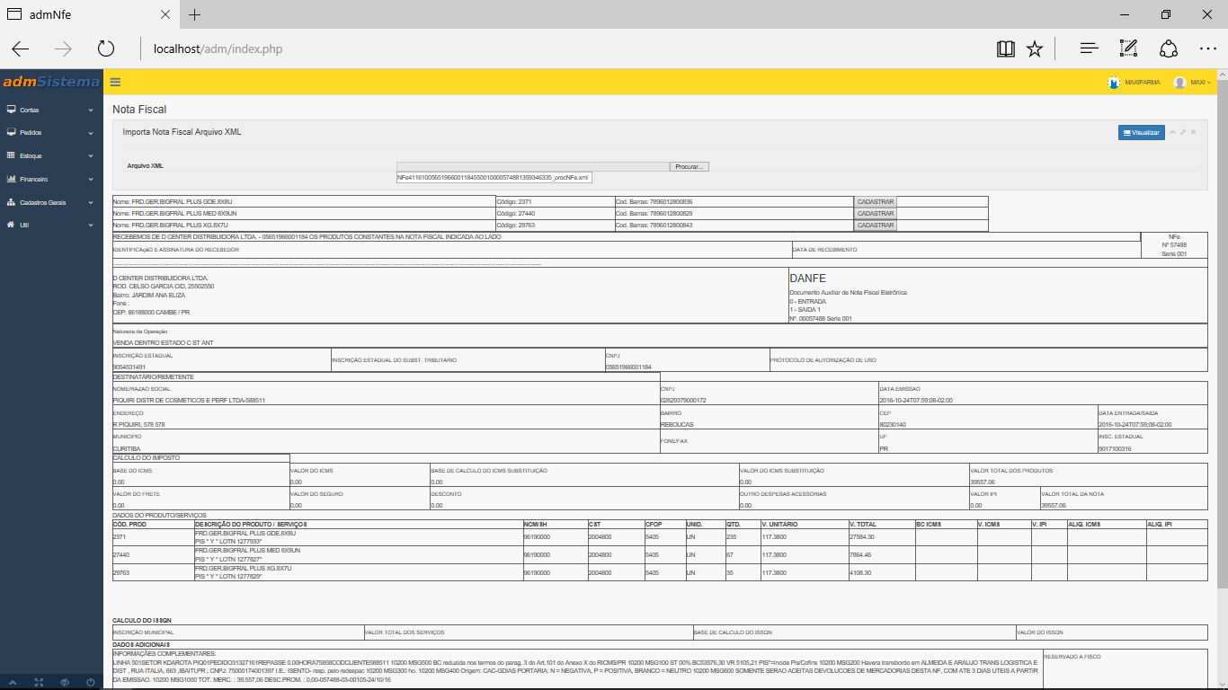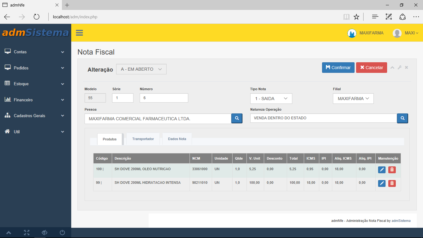 Gerencia as notas fiscais tanto de entrda quanto as de saída, são feitas as validações das NFe de saída junto a receita e disponibiliza a NFe para impressão da DANFE.
